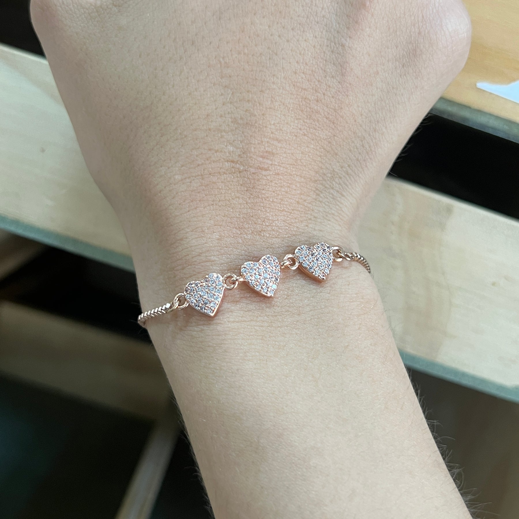 Pulsera Acero Trio de Corazón Oro Rosa🩷