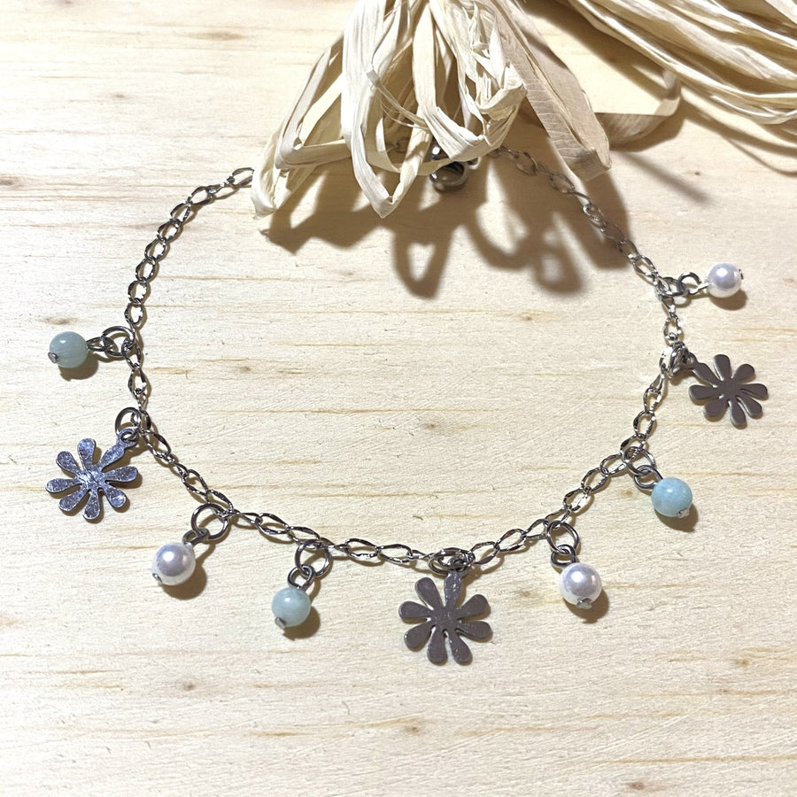 Pulsera de acero inoxidable con aleación plateada con dijes de flores.