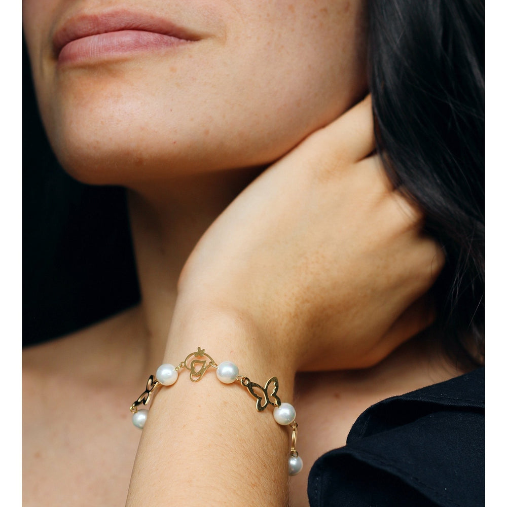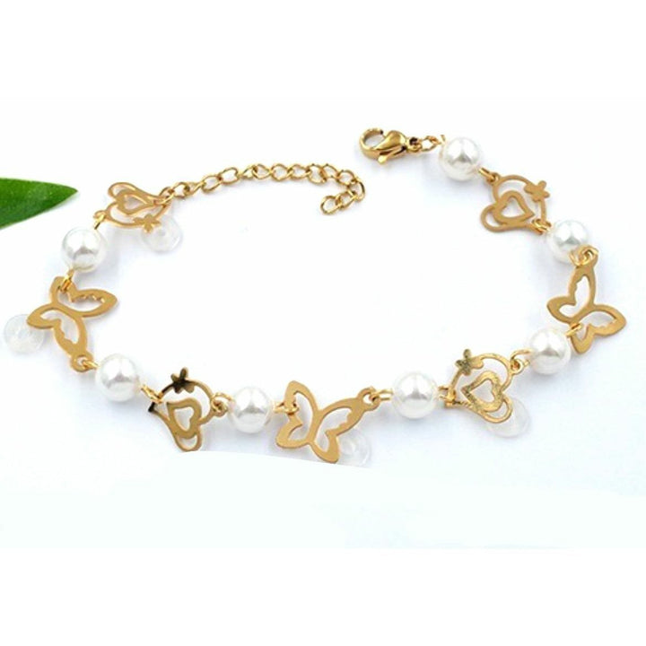 Pulsera de acero inoxidable dorada con dijes de mariposas.
