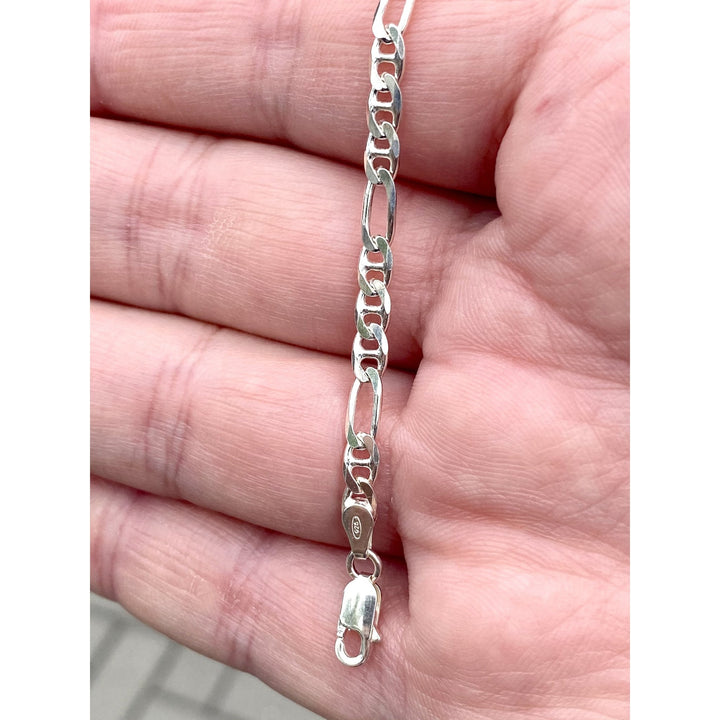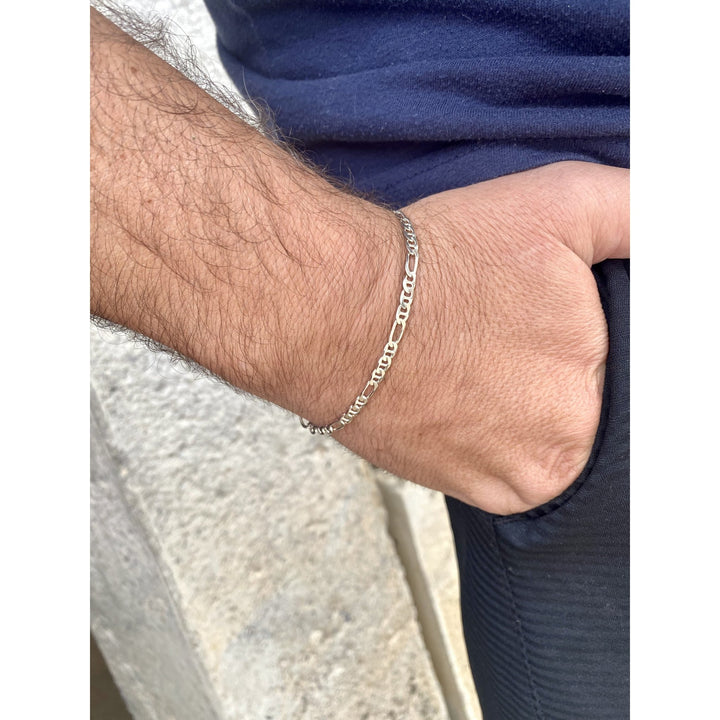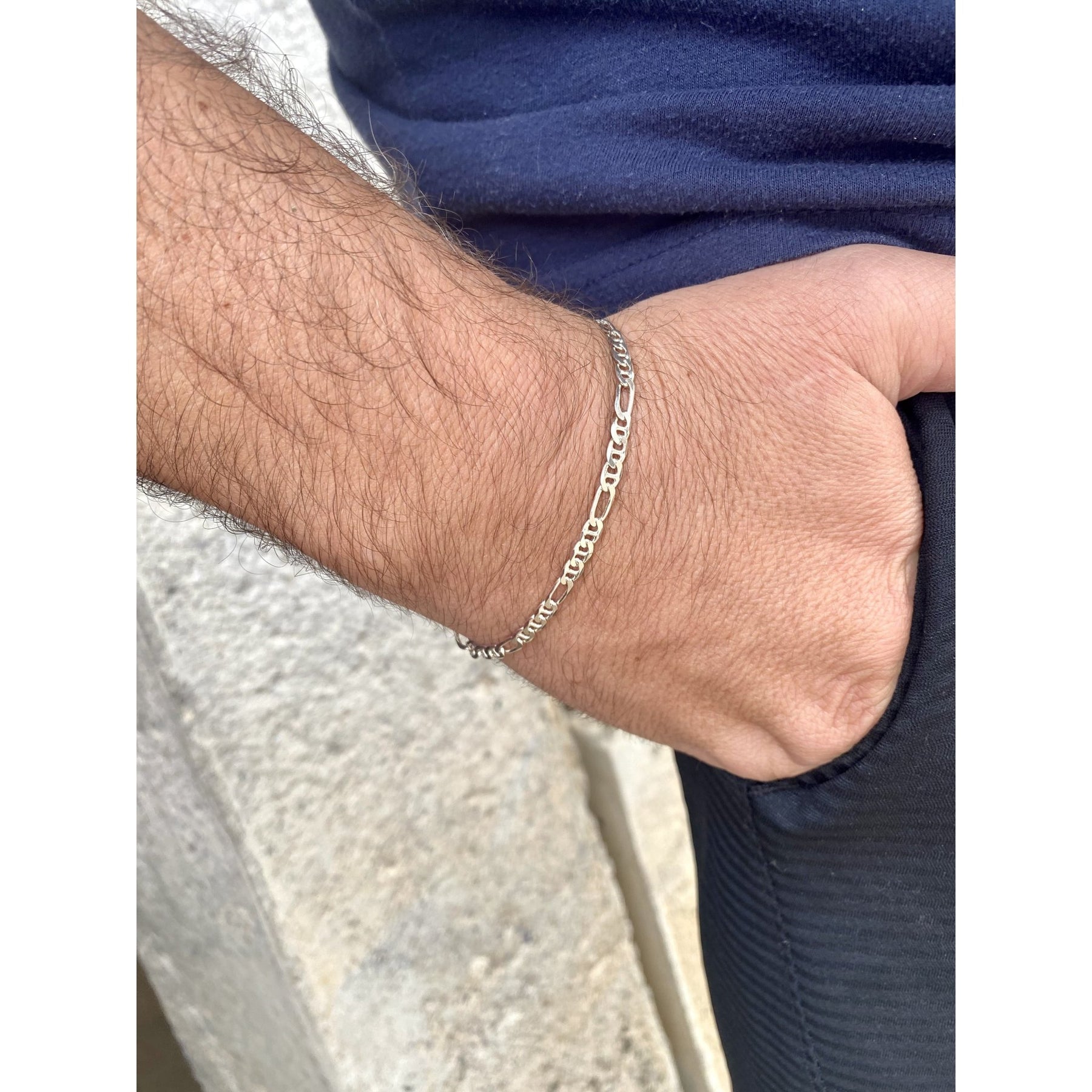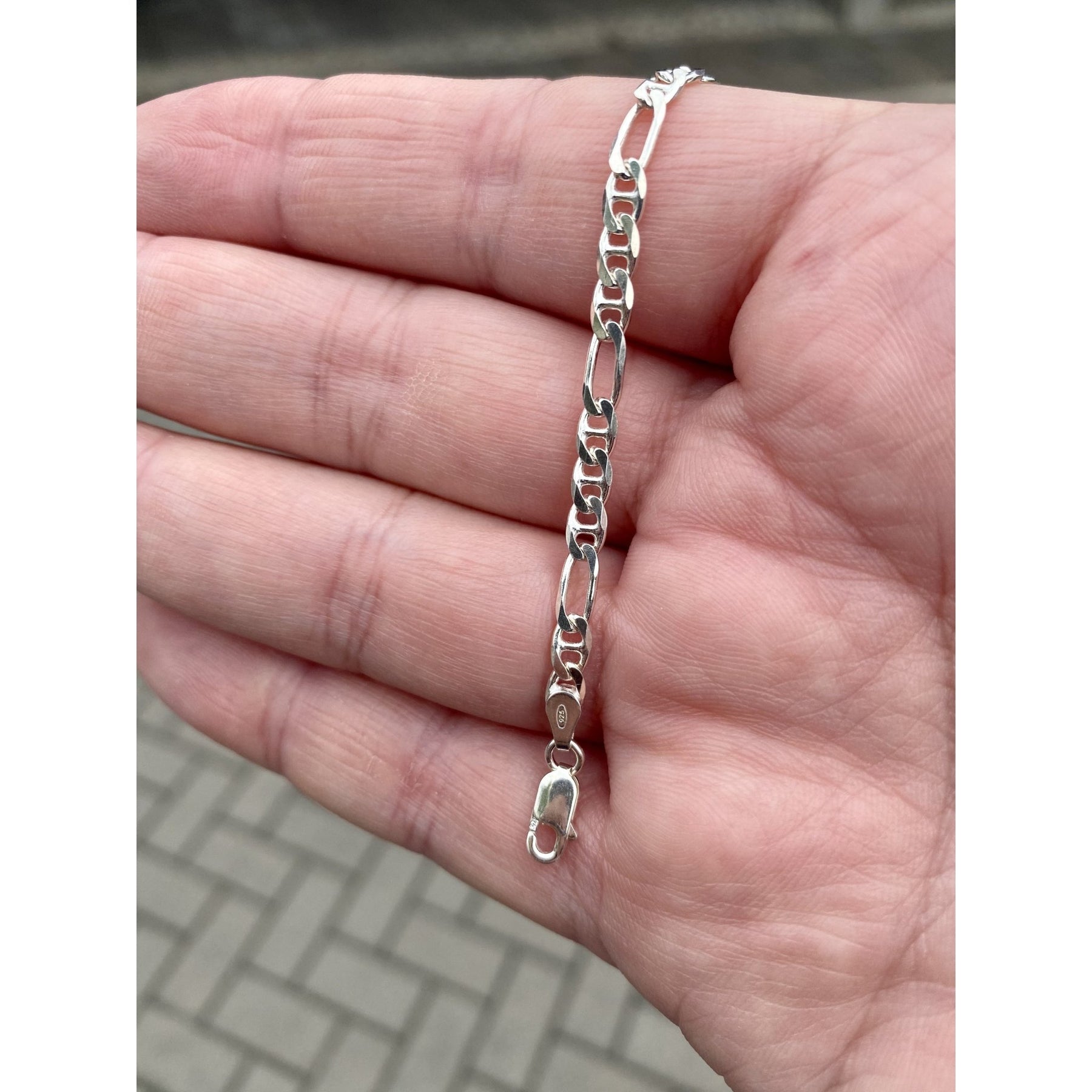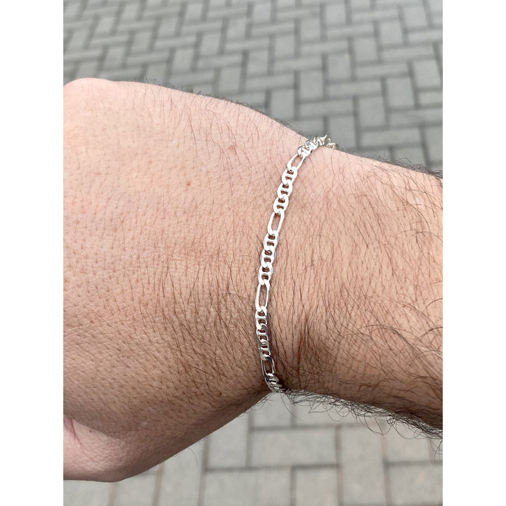 Con un estilo tan atractivo con un toque elegante, esta impresionante pulsera italiana Figaro y Marina ha sido elaborada en plata de ley maciza y mejorada por sus elegantes eslabones de corte de diamante. Con un atractivo patrón de enlace plano de un solo enlace rectangular alargado entrelazado con tres enlaces ovalados. Acabado en un acabado de espejo muy pulido. Un fantástico diseño unisex que se puede usar como accesorio diario y complementará cualquier atuendo.