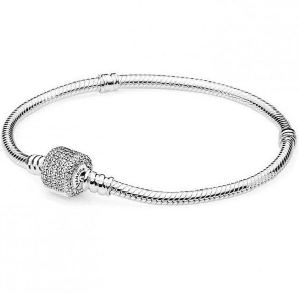 La pulsera PANDÖRA Moments de plata de primera ley con cierre en pavé cuenta con gemas colocadas a mano. Una pulsera para charms de artesanía refinada.