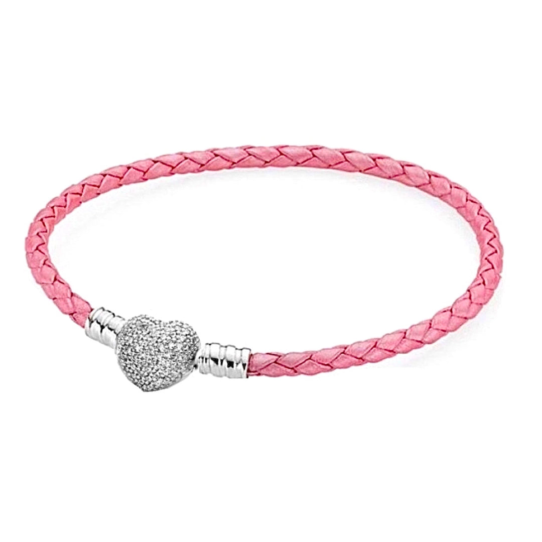 Pulsera de cuero rosada de una vuelta con cierre de plata 925 corazón y logo completo PANDÖRA.