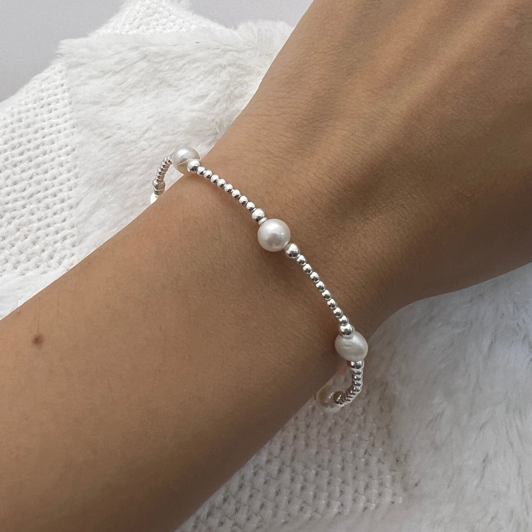Con un tamaño de 19 cm, esta pulsera contiene muchas bolitas de 2 mm para un brillo extra, así como cuatro perlas cultivadas auténticas que se garantiza que no se desprenderán.