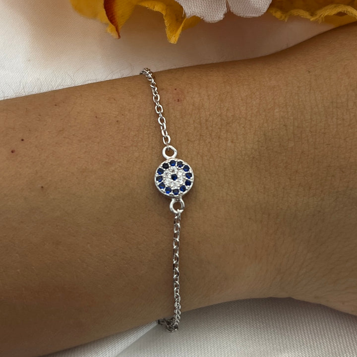 ¡Te presentamos la pulsera de plata con dije de ojo turco! Esta hermosa pulsera está hecha de plata 925 y mide 16cm de largo con una extensión de 4cm. Se dice que el dije del ojo turco trae buena suerte y protege contra las fuerzas del mal. Tanto si crees en la superstición como si no, esta pulsera es una gran declaración de moda. Es perfecta para llevarla a diario o para vestir un traje especial. Así que no esperes, pide hoy tu pulsera de plata con dije de ojo turco