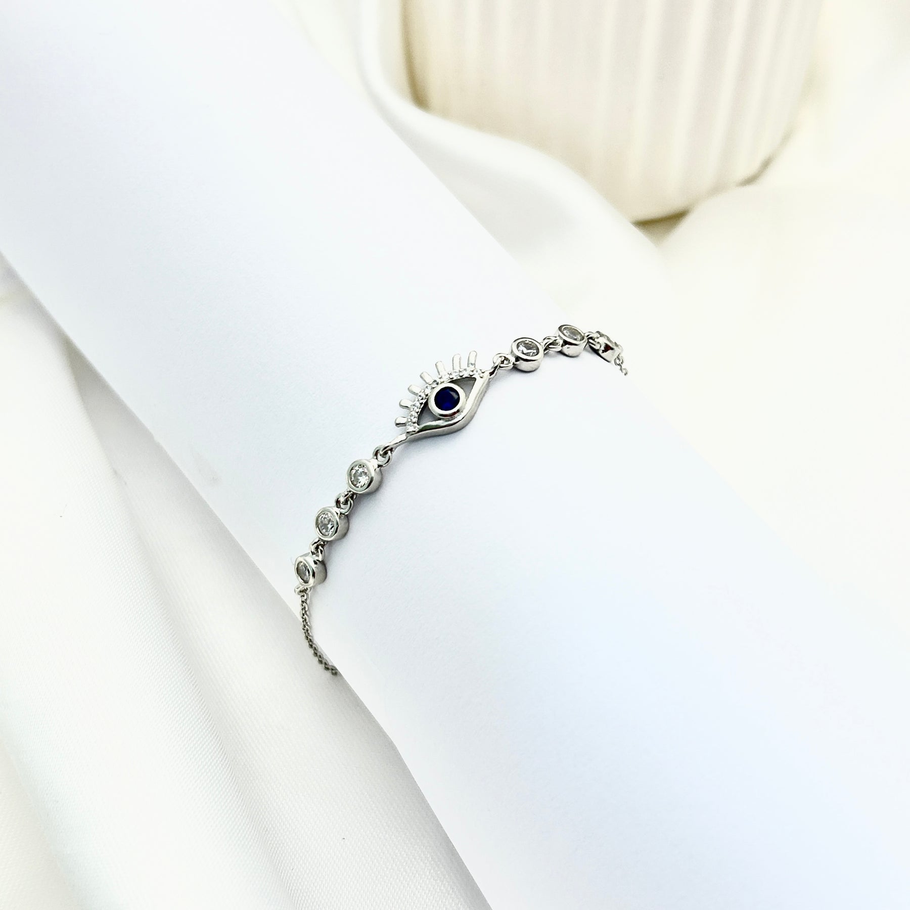 ¡Te presentamos la pulsera de plata con dije de ojo turco! Esta hermosa pulsera está hecha de plata 925 y mide 16cm de largo con una extensión de 4cm. Se dice que el dije del ojo turco trae buena suerte y protege contra las fuerzas del mal. Tanto si crees en la superstición como si no, esta pulsera es una gran declaración de moda. Es perfecta para llevarla a diario o para vestir un traje especial. Así que no esperes, pide hoy tu pulsera de plata con dije de ojo turco