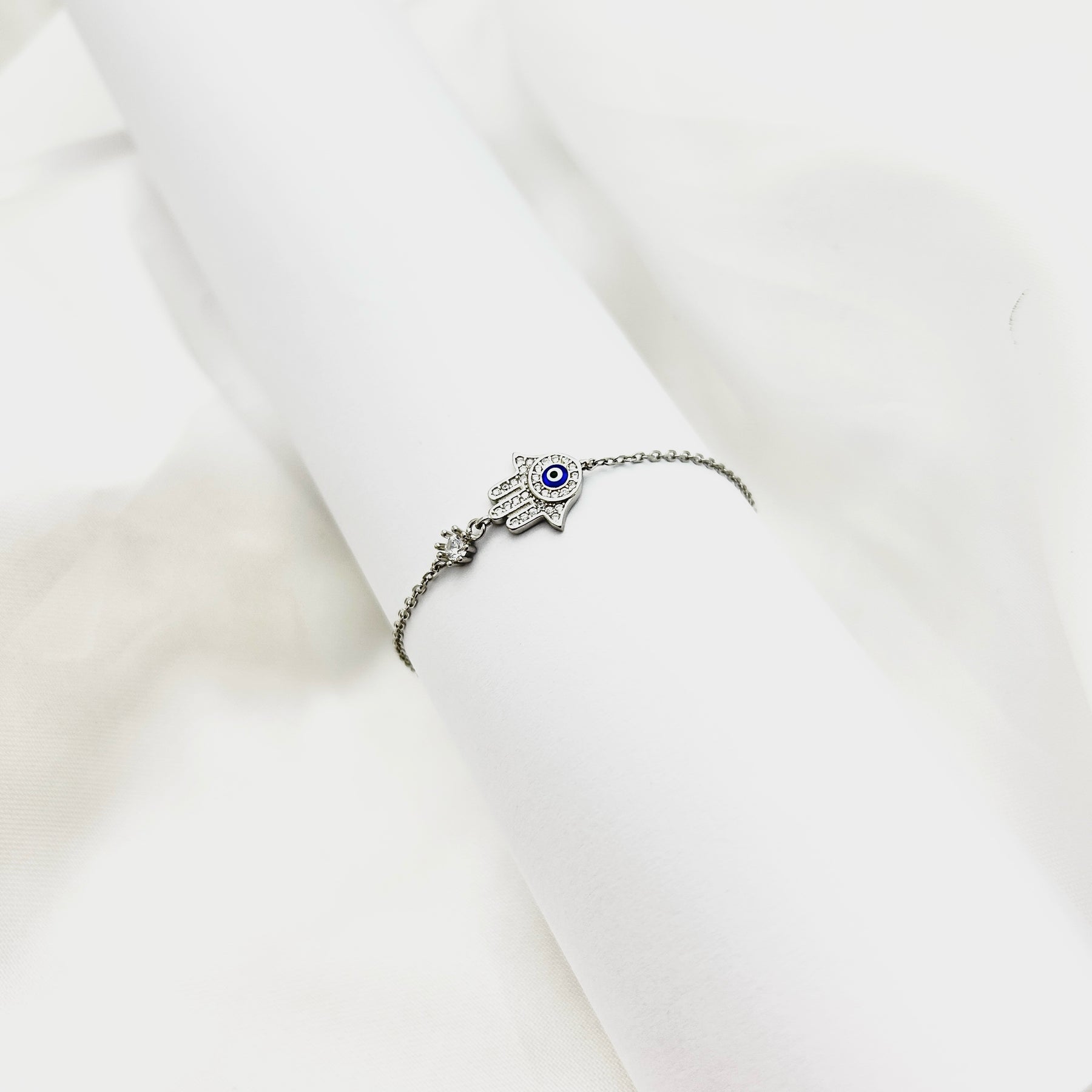 ¡Te presentamos la pulsera de plata con dije de ojo turco! Esta hermosa pulsera está hecha de plata 925 y mide 16cm de largo con una extensión de 4cm. Se dice que el dije del ojo turco trae buena suerte y protege contra las fuerzas del mal. Tanto si crees en la superstición como si no, esta pulsera es una gran declaración de moda. Es perfecta para llevarla a diario o para vestir un traje especial. Así que no esperes, pide hoy tu pulsera de plata con dije de ojo turco