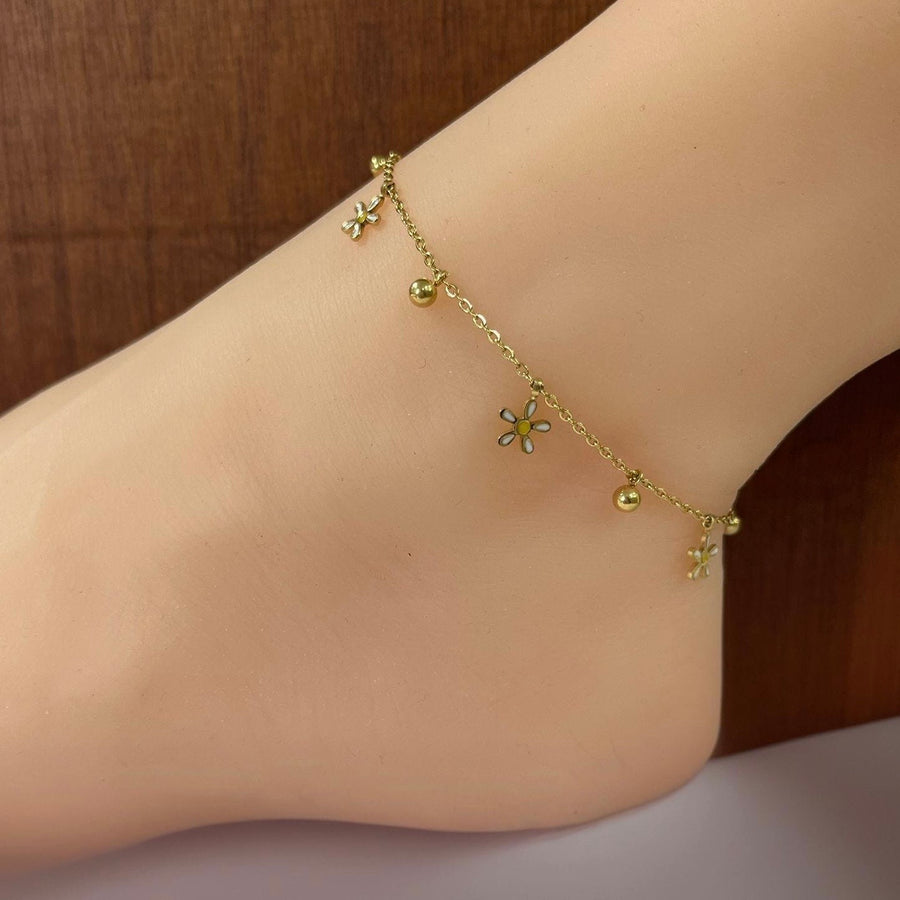 Tobillera Acero Dorada Flor White