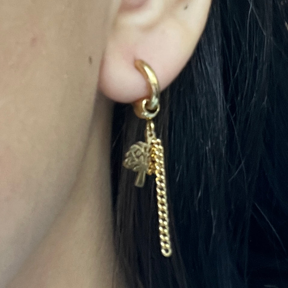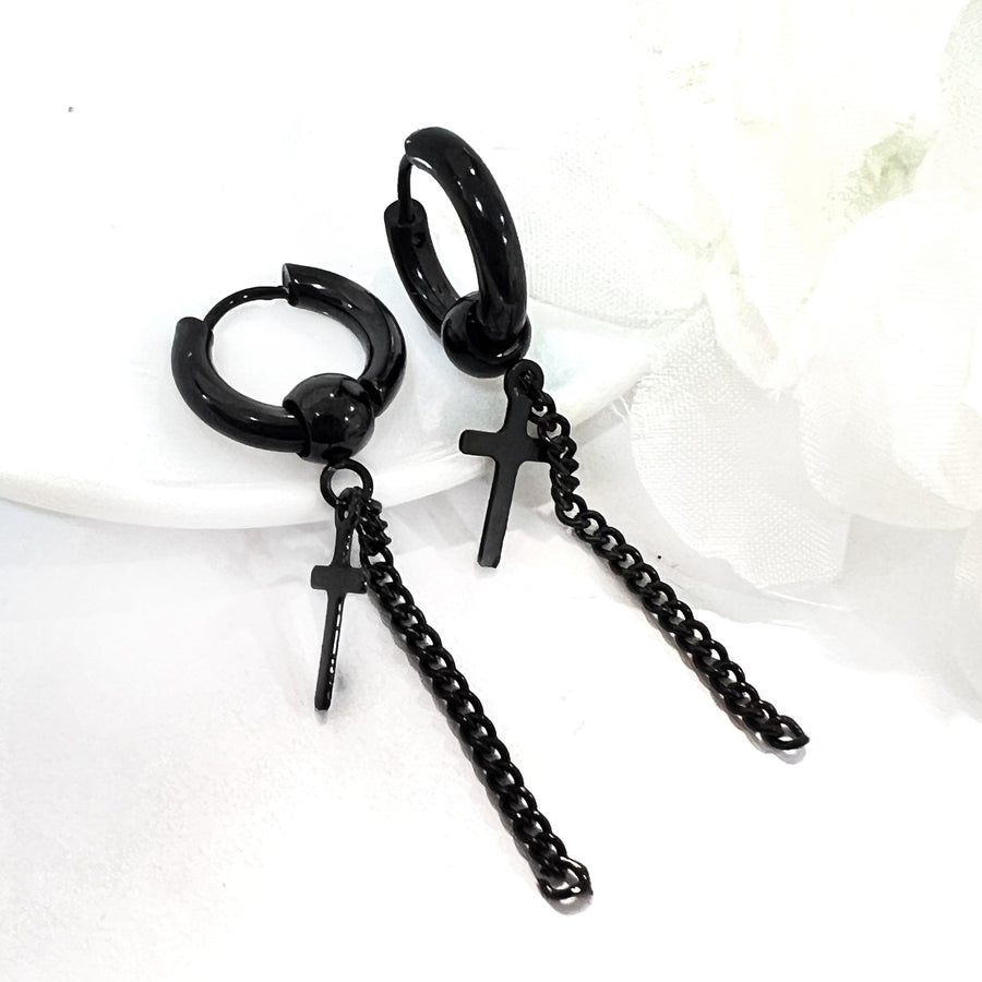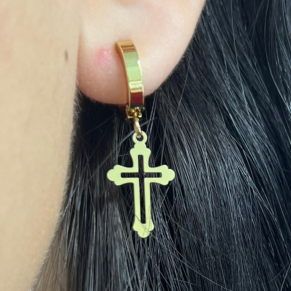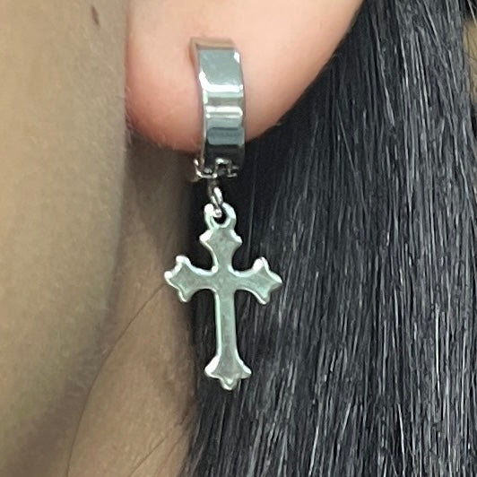Huggies de Acero ✝️ Redondo 12MM Cadena Cruz Lisa
