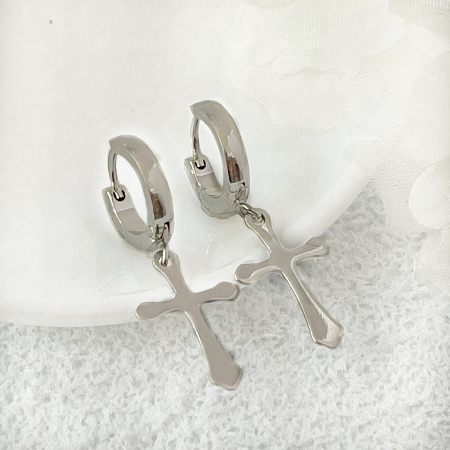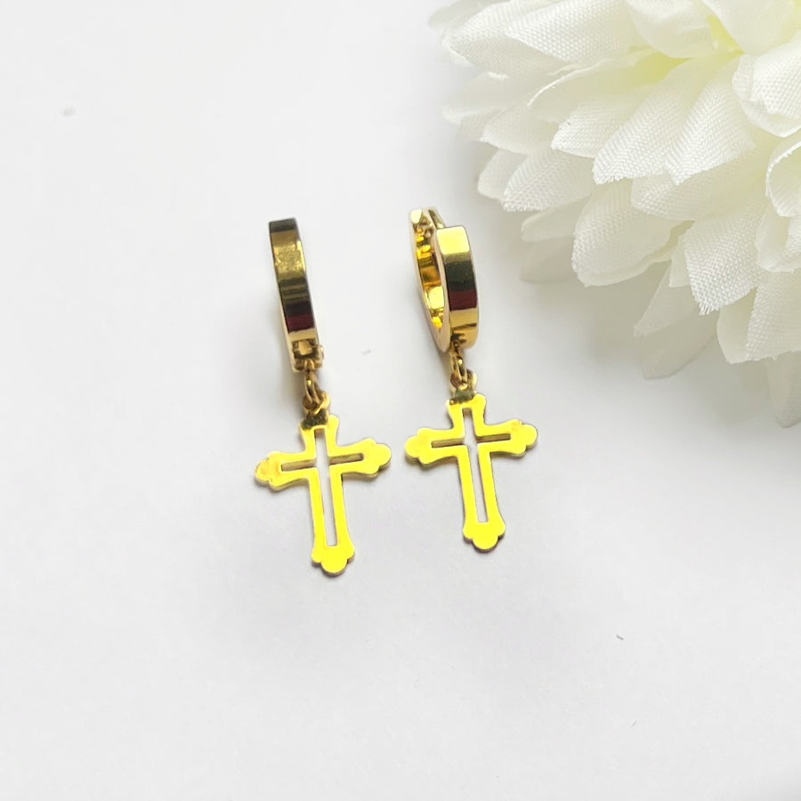 Huggies de Acero ✝️ Redondo Cadena Cruz Lisa