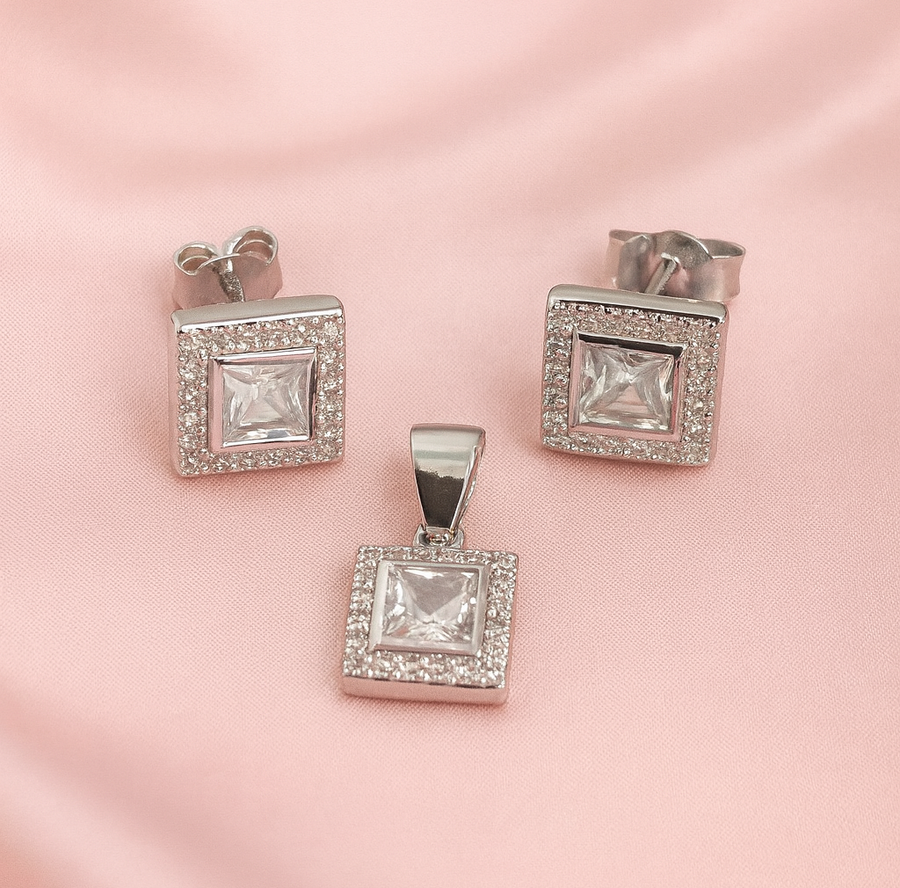 Aretes de Acero Cuadro Plateado