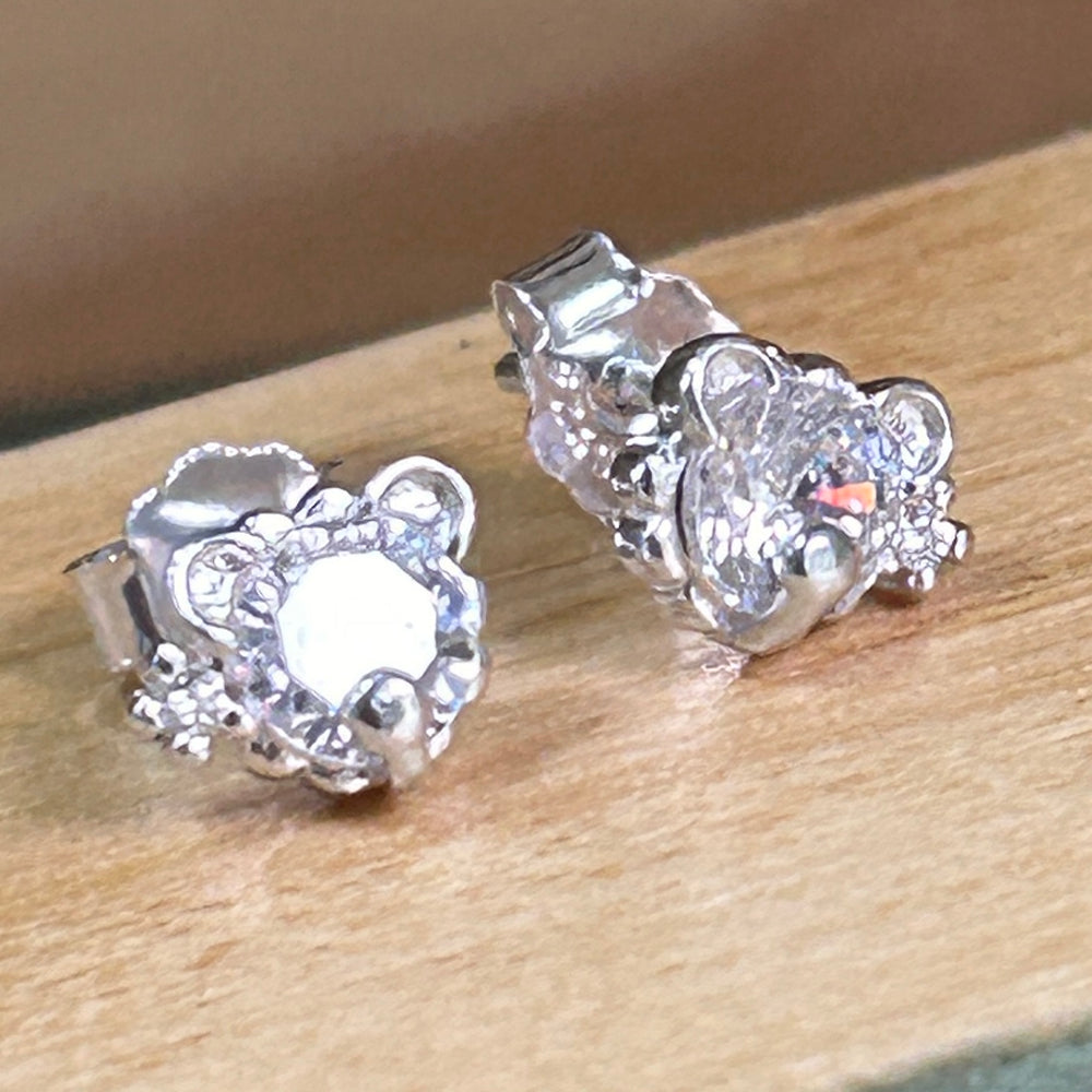 Aretes de Plata Oso Circonitas Blancas 6MM